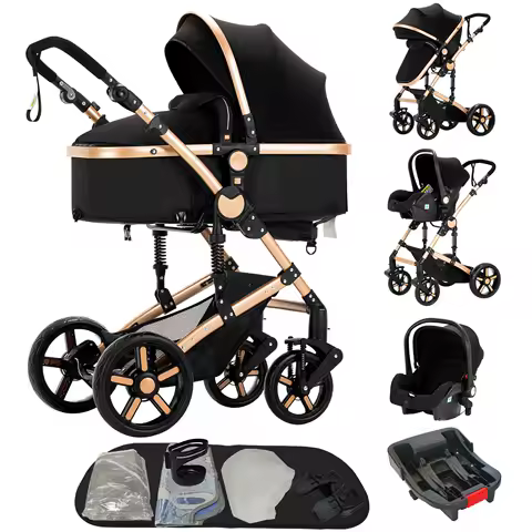 3 in 1 Baby Stroller with Car Seat ISOFIX Compatible 5-Point Harness Shock-Absorbing Wheels Newborn Stroller 0-3Y Lightweight