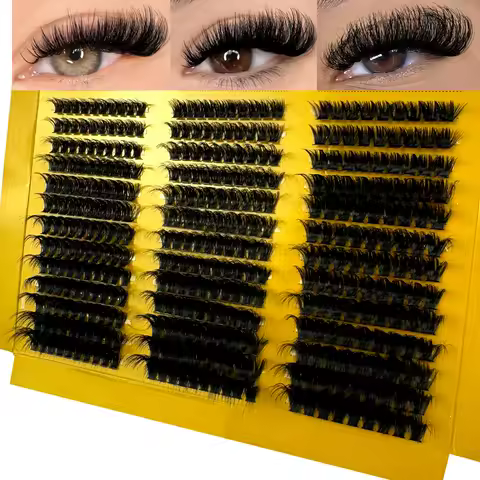 300pcs Fluffy DIY Cluster Eyelashes 8-20mm Mixed Eyelash Extension 0.07mm Russian D Curl Thick And Reusable Dramatic Lashes
