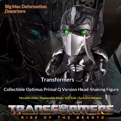 Killerbody Transformers Rise Of The Beasts Optimus Primal Q Bobble Head Figurine Led Eyes Movable Limbs Swappable Mask Collectib